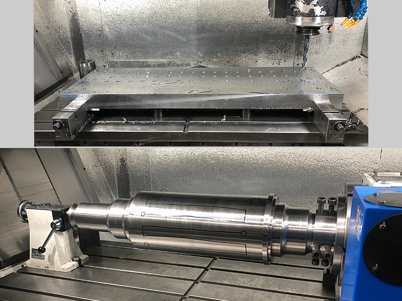 テーブルをフルに生かしたプレートの加工や長尺品もA軸を用いた加工が可能です